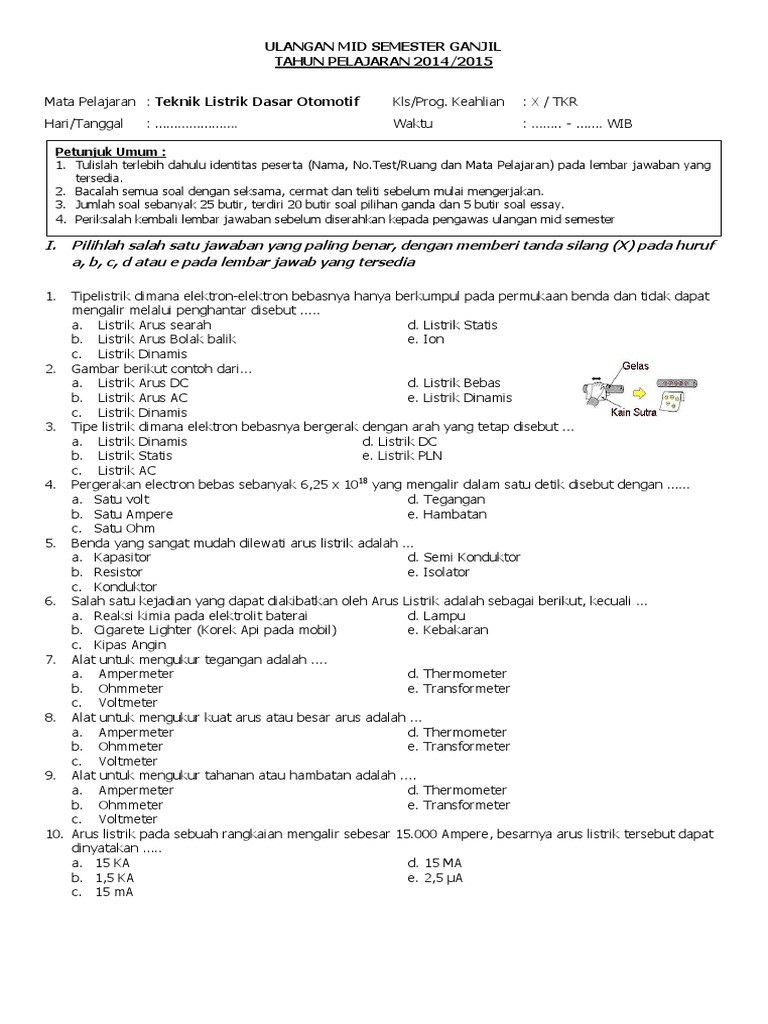 Feb 02, 2021 · soal dan jawaban pekerjaan dasar teknik otomotif semester 1.